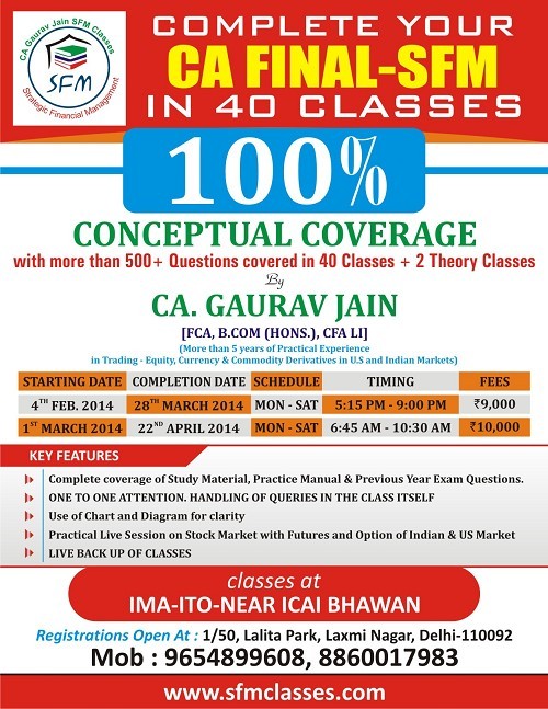 “Aaditya Jain Sir” is considered to be best CA Final SFM Faculty.I am currently taking his classes and highly satisfied.Recently his students Secured AIR-1 & 100 out of 100 marks in CA Final SFM.