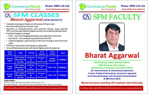 Mr. Bharat Aggarwal (MBA IIM L & MS Finance LBS) will be conducting the demo lecture for SFM/AMA course for CA/CMA final students.