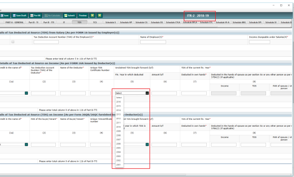The section 19C of the TDS is where you fill up details related to tax decucted (by your Bank). The bank deducted tax in 2017 however in the drop-down menu, they haven't listed year 2017.