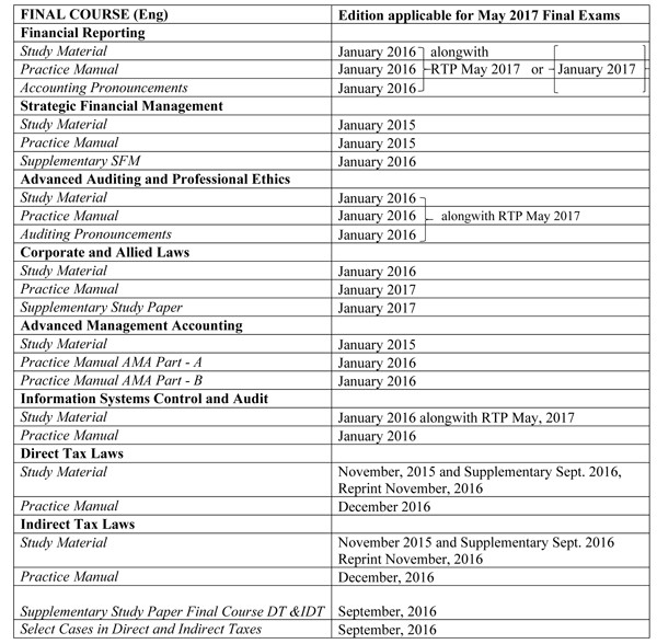 Applicable Material for Intermediate (IPC) and Final Courses